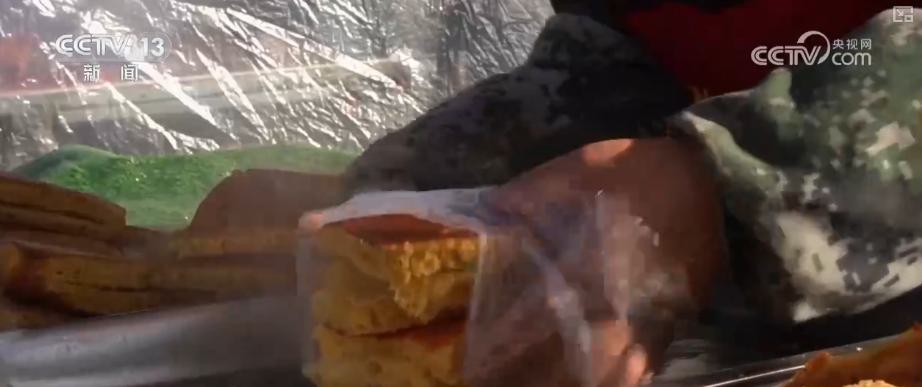 风凉的天气里,能飞速补充热量确当属碳水化合物。这种现烙的玉米饼光芒金黄、底部焦香,好意思味又实惠,摊位前每天皆有不少主顾列队购买。